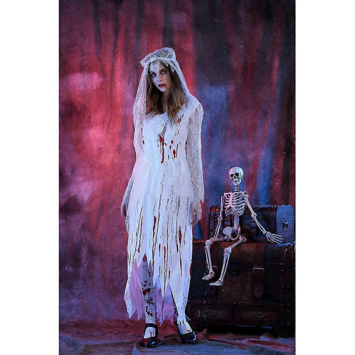 Adult Halloween Costumes Women's Irregular Blood Corpse Bride Long Dress with Veil for Halloween and Cosplay 2Pack