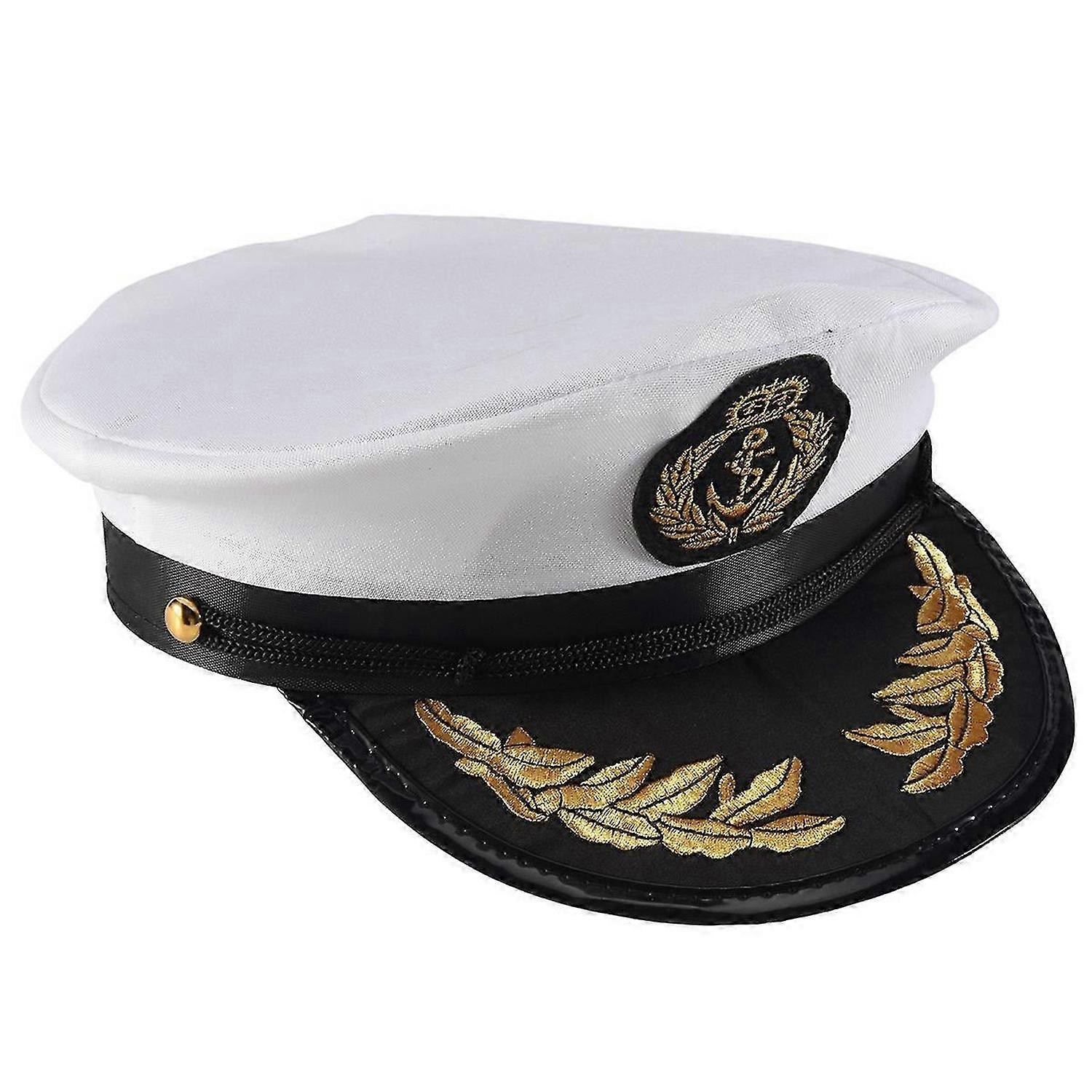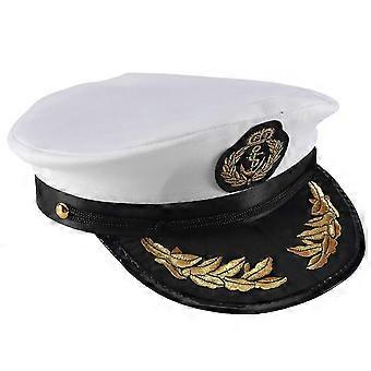 Adult Yacht Boat Captain Hat Navy Cap Ship Sailor Costume Black+White