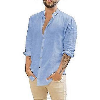 Linen Solid Color Men's Stand Collar Shirts, Men's Casual Long Sleeved Shirt Loose