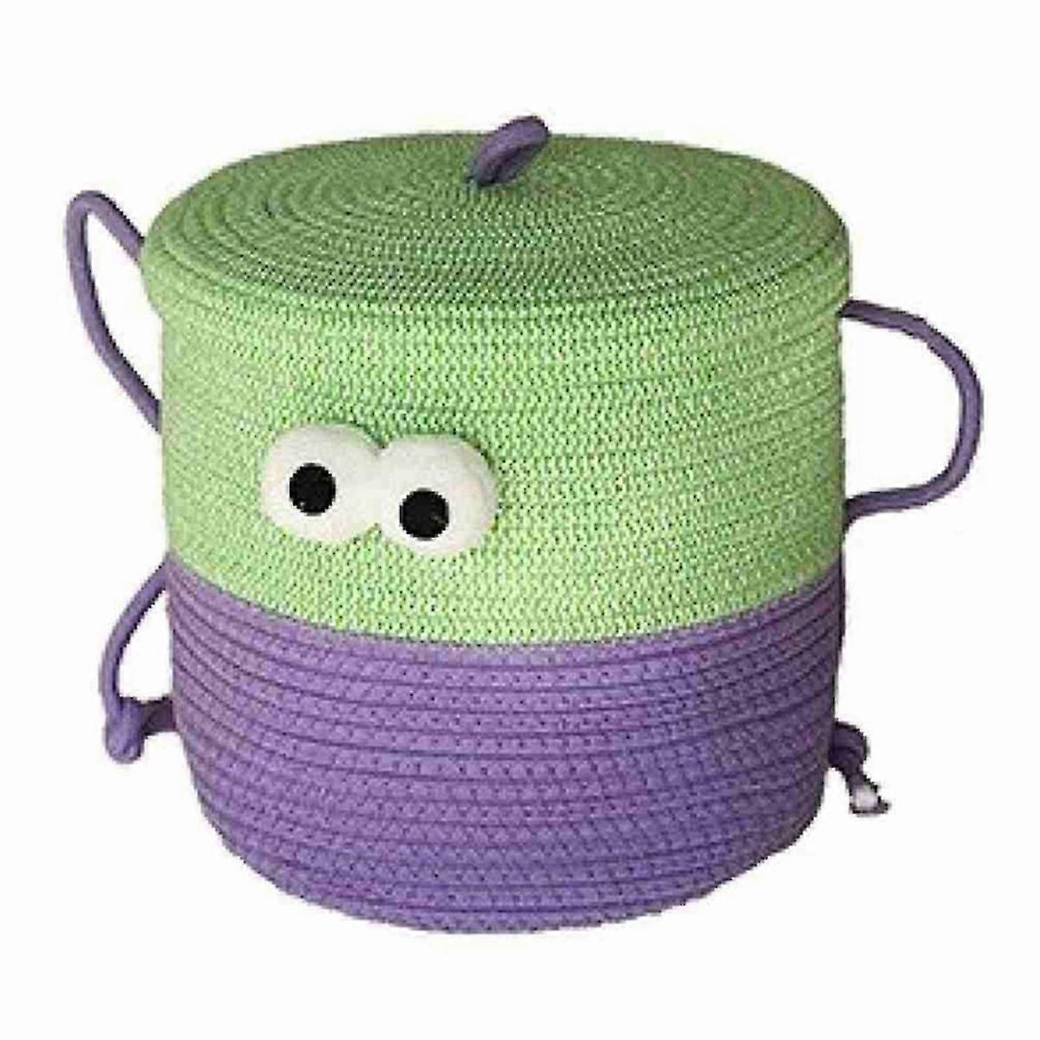 Cartoon Woven Storage Basket Organizer of Round Toy with Cover B