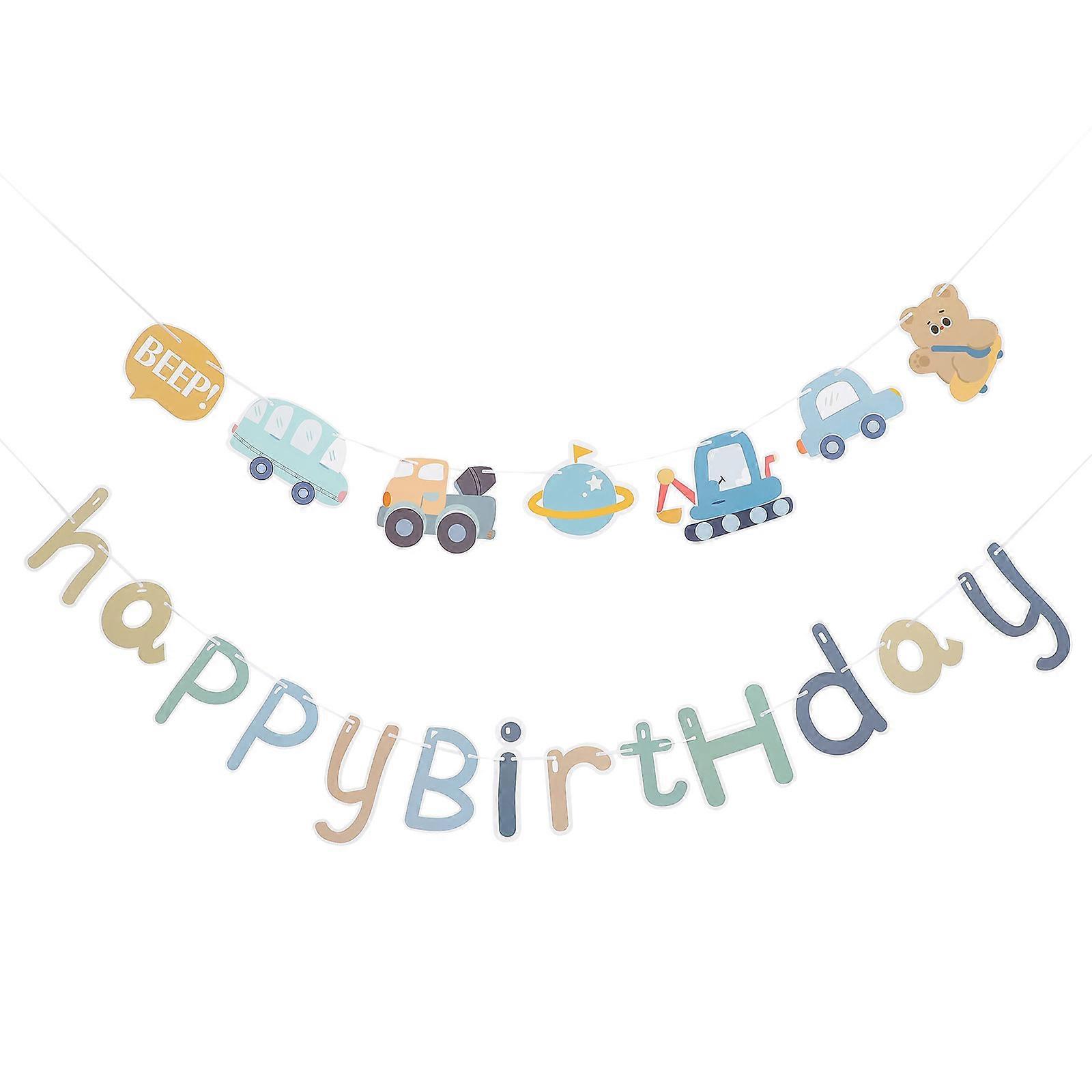 Cartoon Birthday Banner Photo Background for Boys Paper Rectangle Shape Birthday Party 1Set