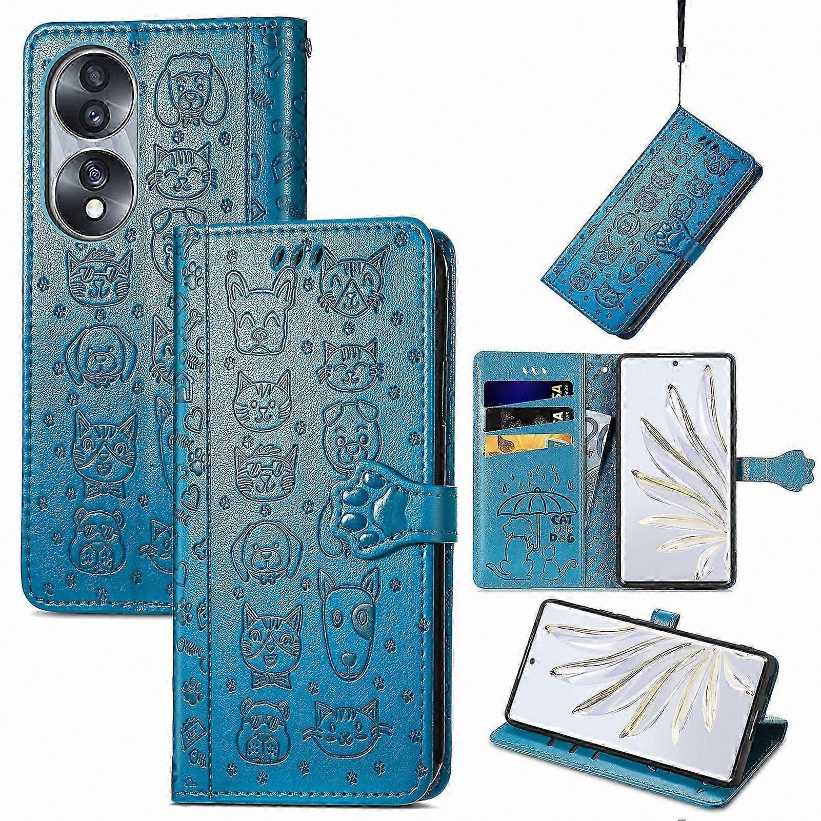 Cartoon Cat Dog Design Wallet Case for Honor 70, PU Leather Flip Cover with Card Slots