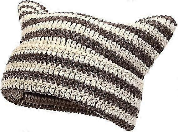 Crochet Cat Ear Beanie Y2K Accessories for Women Striped Knitted Slouchy Grunge Fox Gothic Beanie Skull Winter CapRice