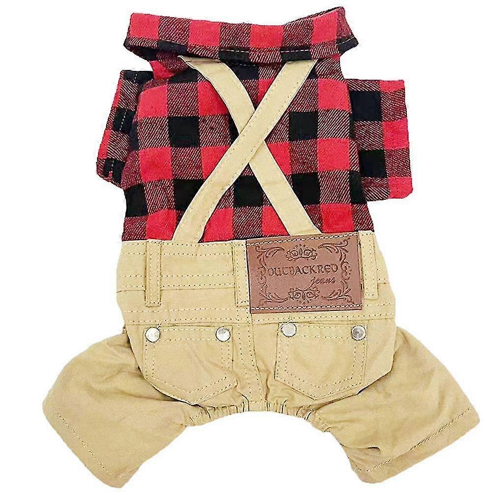 Dog Overalls Pet Clothes Boy Dog Outfits Jumpsuit Black/red Plaid Shirt Top