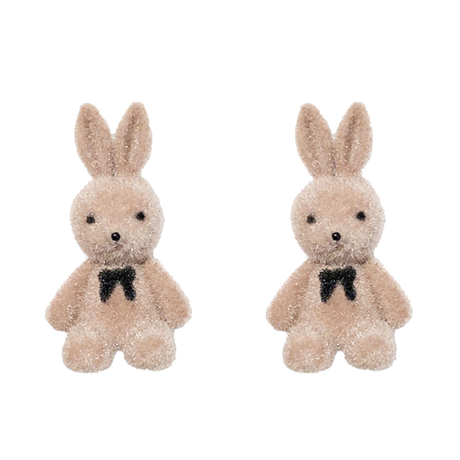 Korean Kawaii Funny Plush Bear Stud Earrings Cute Bow Bear Statement Jewelry