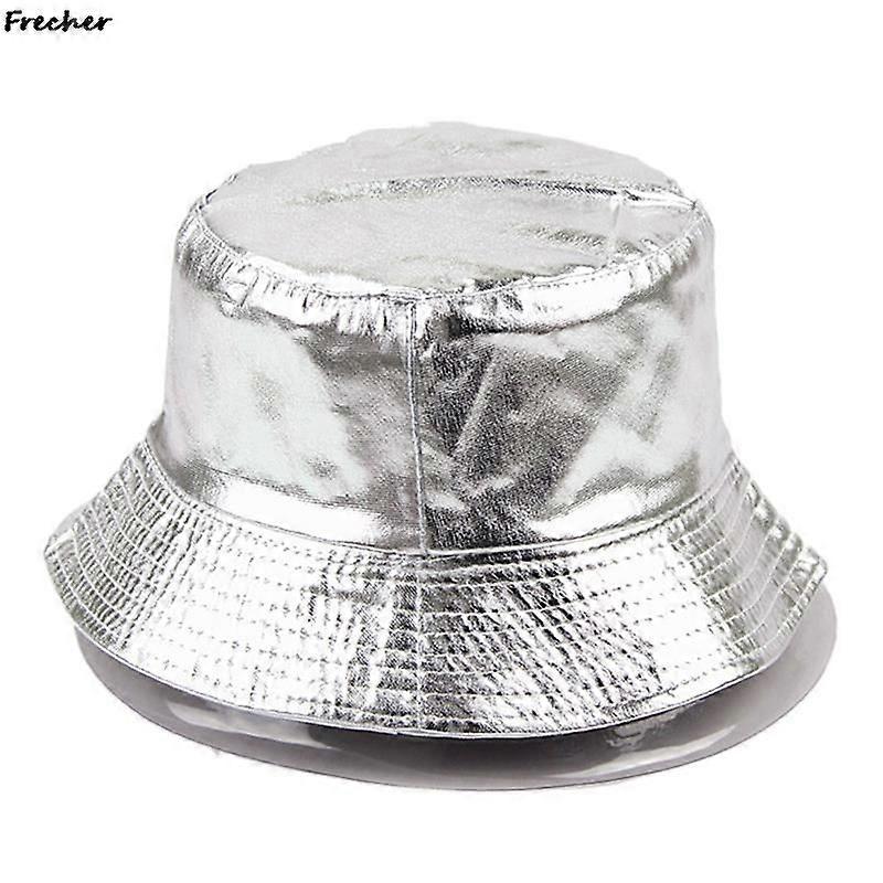 Korean Style Sun Hat Bright Leather Bucket Hats Women Men Street Hip Hop Panama Caps Silver Golden Simple Cap Party Club Chapeau