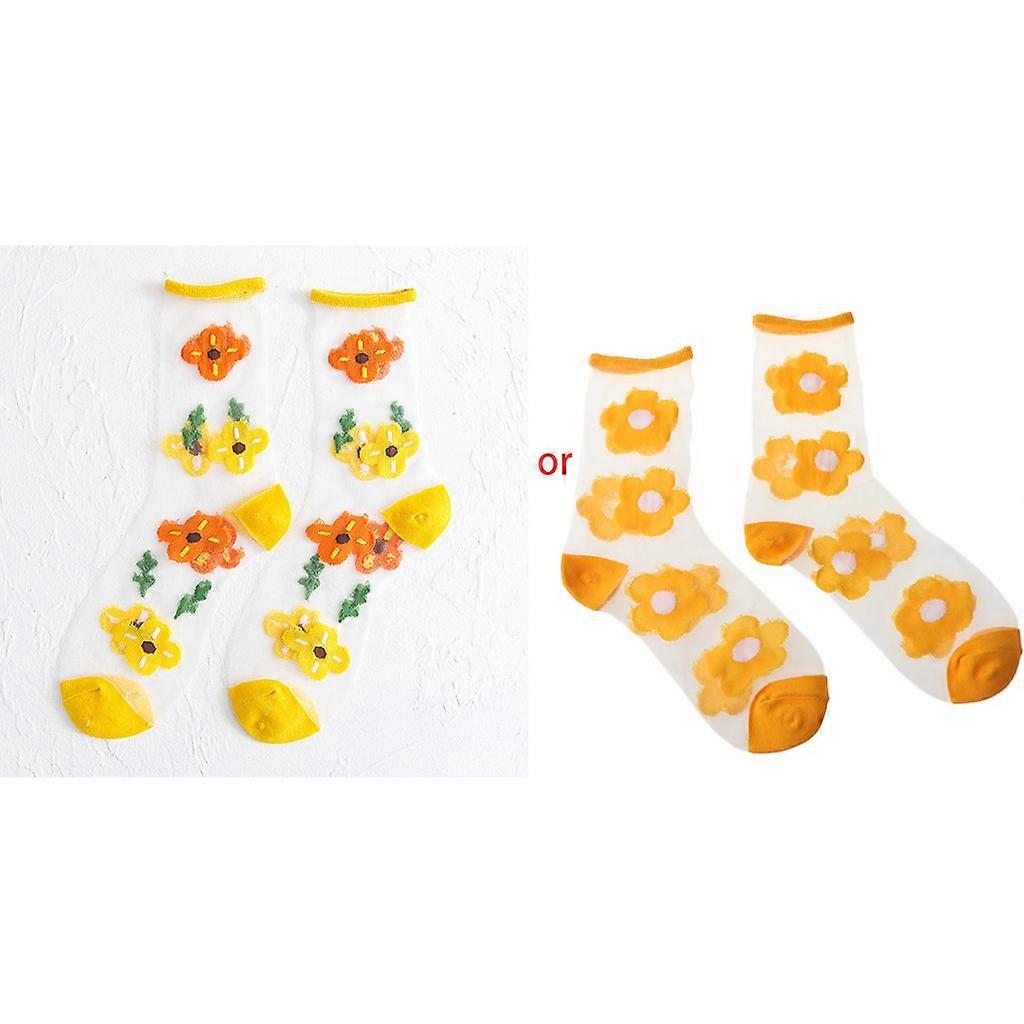 Korean Harajuku Women Crystal Fiber Ankle Socks Sweet Bright Candy Colored Daisy Floral Embroidery Transparent Ultra-Thin Mid Tube Hosiery