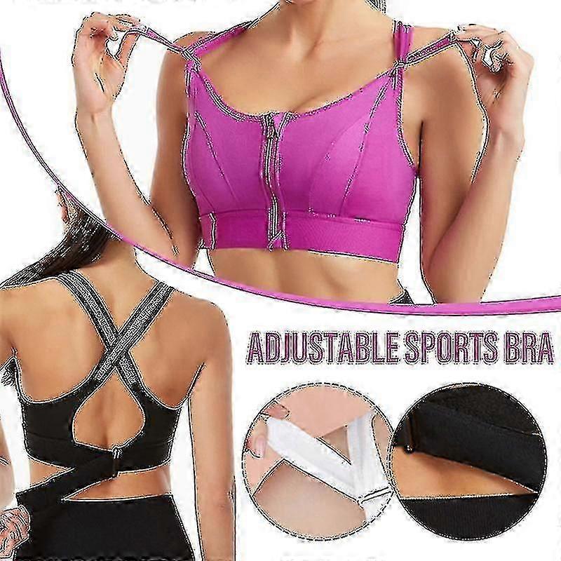 Wireless Supportive Sports Bra For Women Front Zip Design Cross Back Vest Yoga Workout Wear