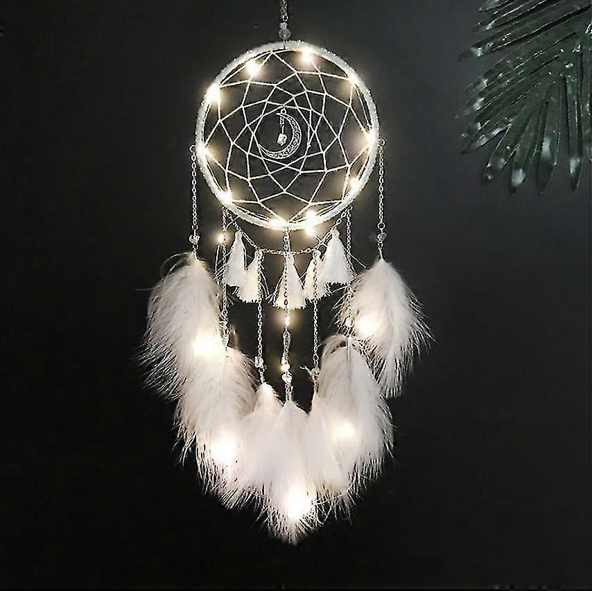 Small Dream Catcher With Led Light, Handmade Feather Dream Catcher, Dreamcatcher Wall Decor Home Ornament (moonlight White)