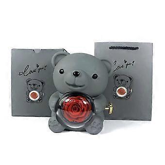 المحفوظة روز عناق الدب هدية مربع مع حقيبة يد زهرة أبدية الدورية الدب حامل المجوهرات للنساء
