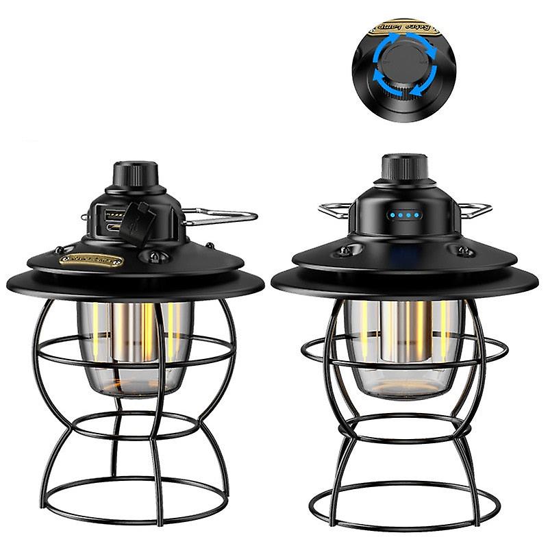 Portable Retro Camping Lantern Rechargeable Metal Handle Flashlight Vintage Warm White Light Outdoor Hanging Tent Light