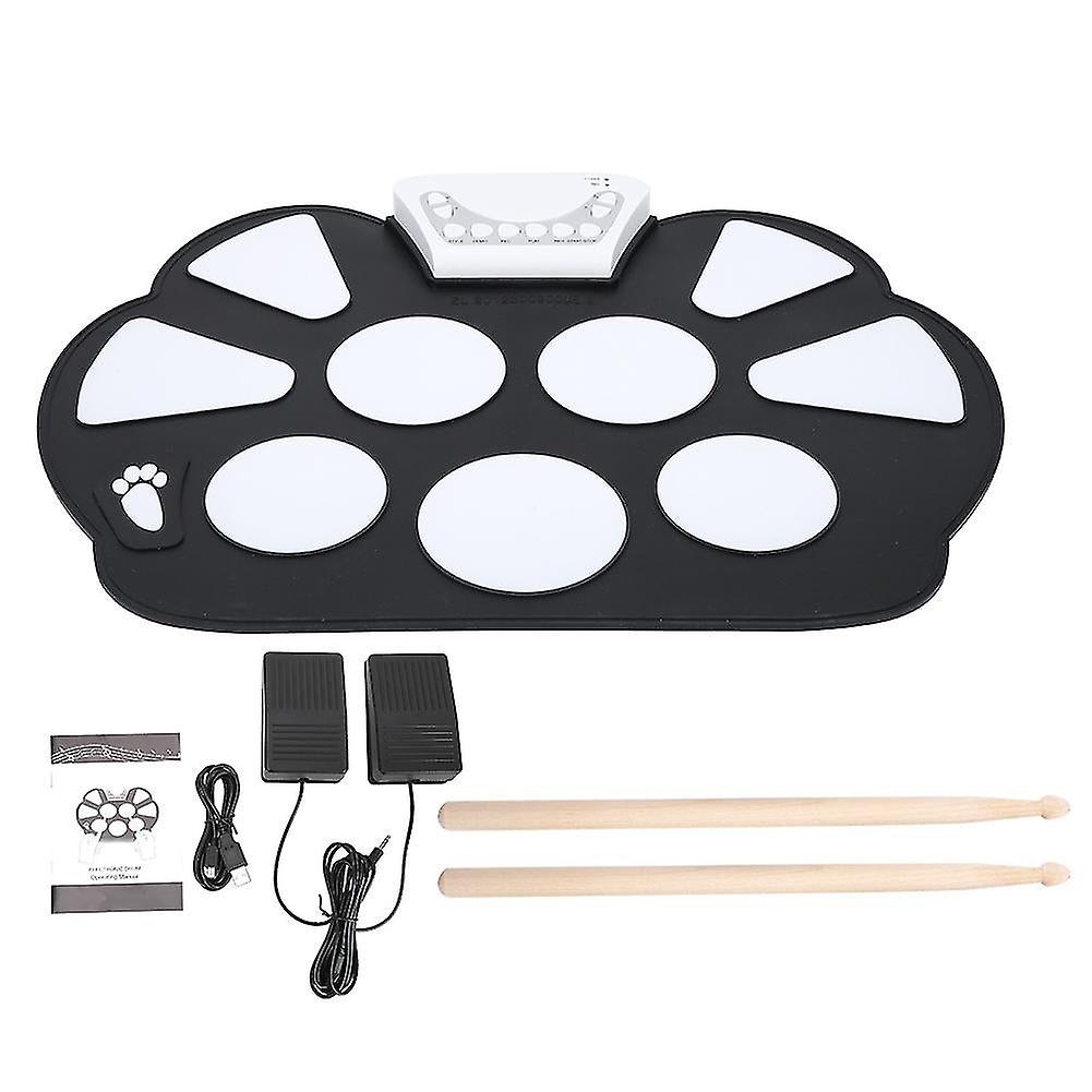 Portable Digital Usb / Dc5v Silicone Electronic Drum Kit Pad Musical Instrument Black