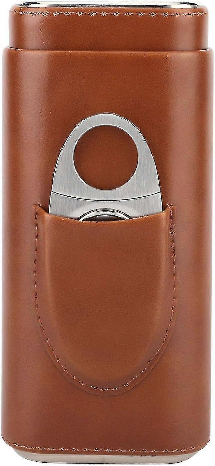 Portable Cigar Humidor Leather Cigar Case Cedar Wood Lined Cigar Case With Cutter(brown)