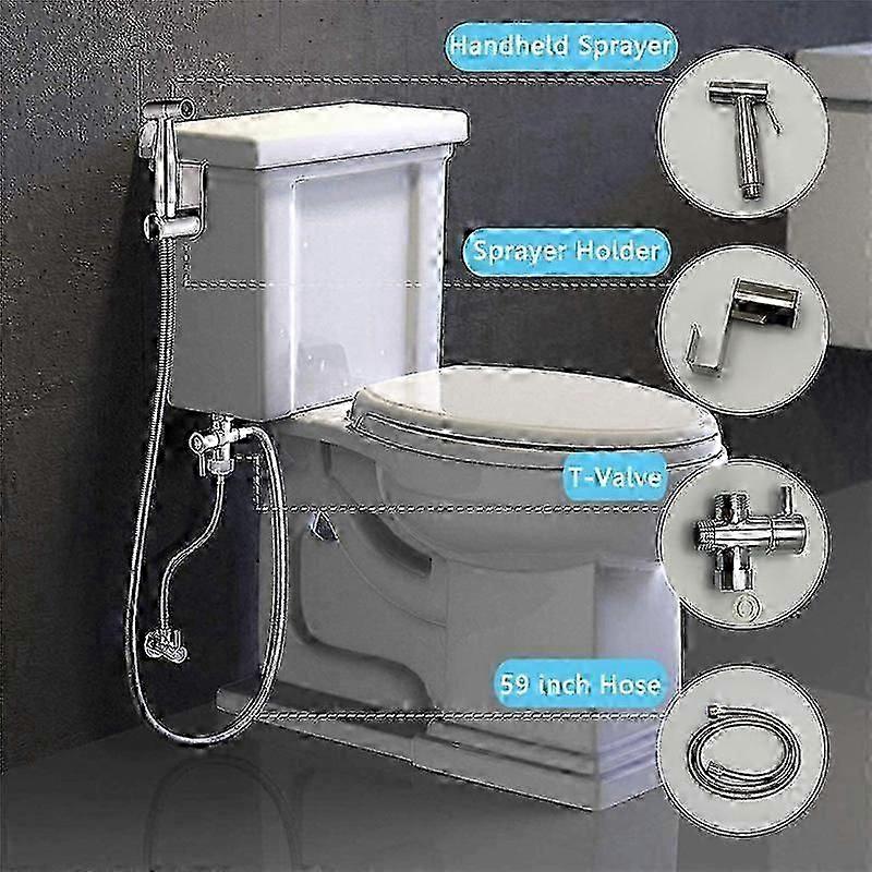 Handheld Toilet Bidet Sprayer Set Stainless Steel Hand Bidet faucet Sprayer Guns Bathroom Hand Sprayer Shower Head Self Cleaning
