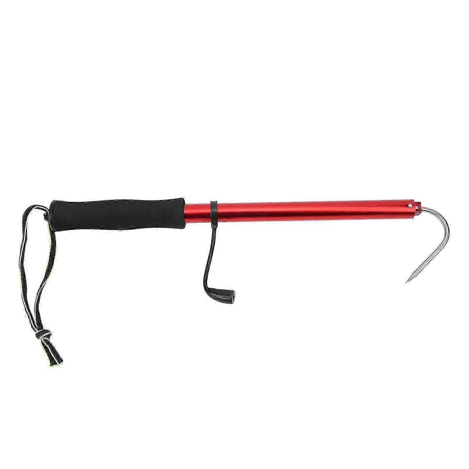 Portable Telescopic Sea Fishing Gaff Aluminum Alloy Pole with Stainless Steel Spear HookRed 90CM