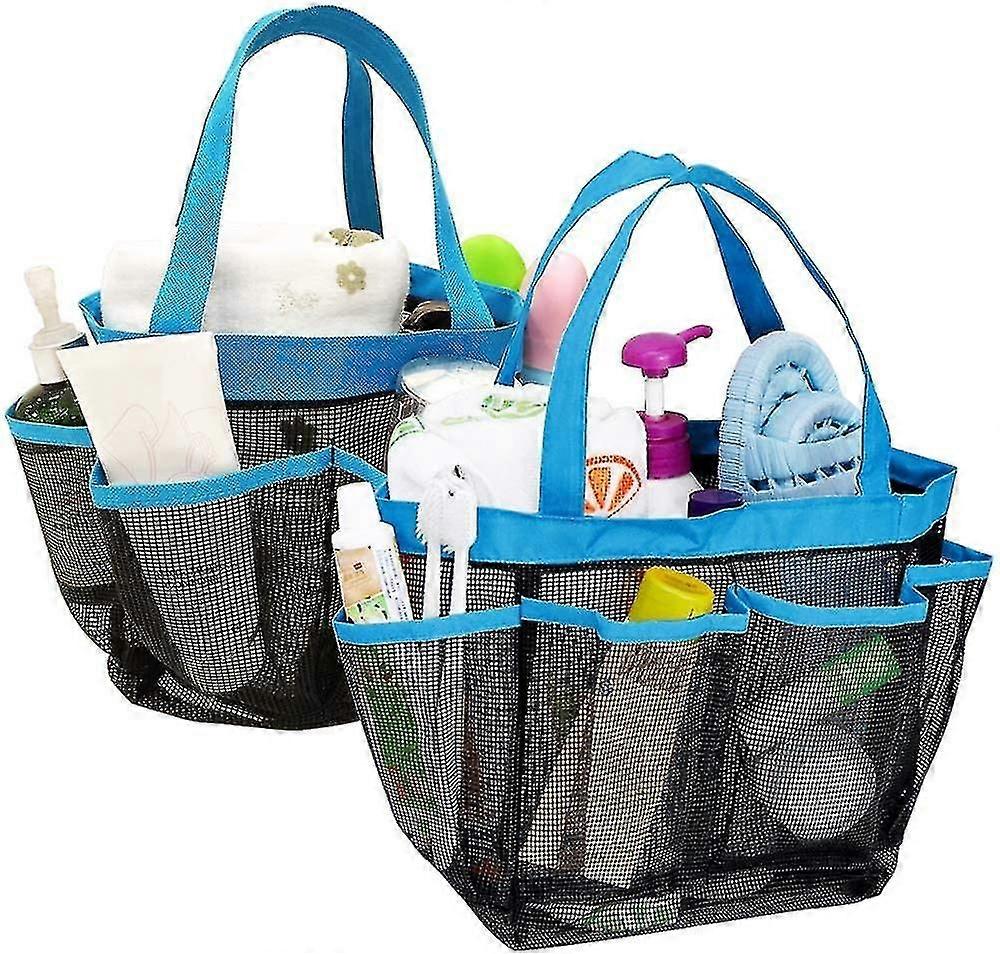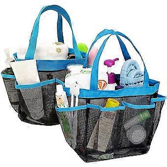 Portable Mesh Shower Caddy With 8 Storage Pockets, Hanging Tote Bath Organizer Shower Organiser For Dorm Gym Camp Travel 2 Packs (blue)
