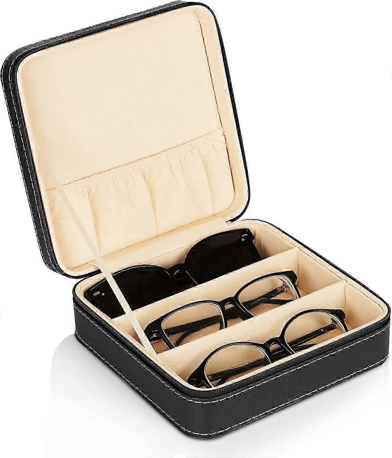 Portable 3-Slot Glasses Storage Travel Sunglass Organizer Zipper Box Jewelry Leatherette Display Case Collector