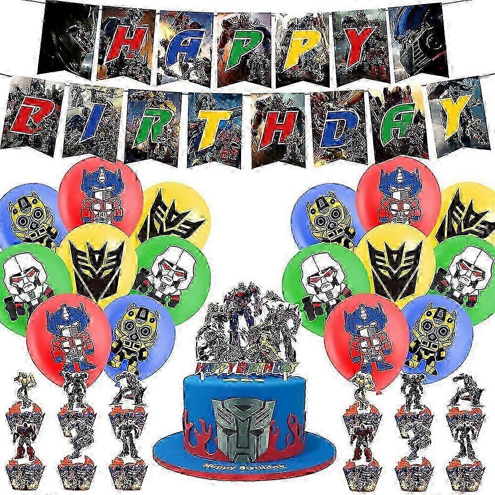 Transformers Themed Happy Birthday Party Supplies Kit Banner Balloons Cake Cupcake Toppers Decor Set