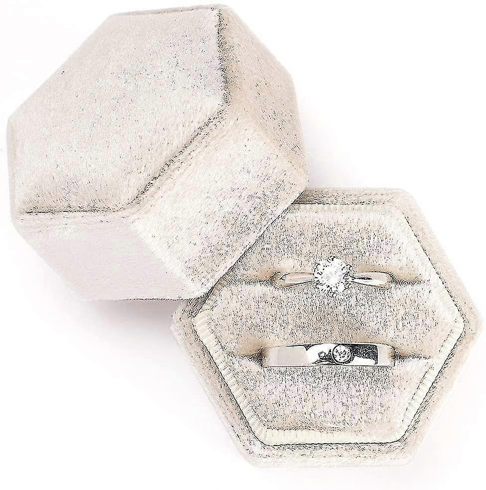 Velvet Jewelry Ring Box, Hexagon Premium Gorgeous Vintage Double Ring Gift Box With Detachable Lid