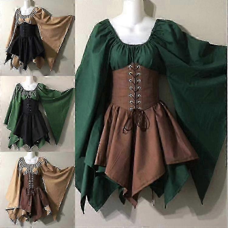 Women'S Medieval Renaissance Costumes Pirate Corset Dress Women Flare Sleeve Traditional Irish Short Dress