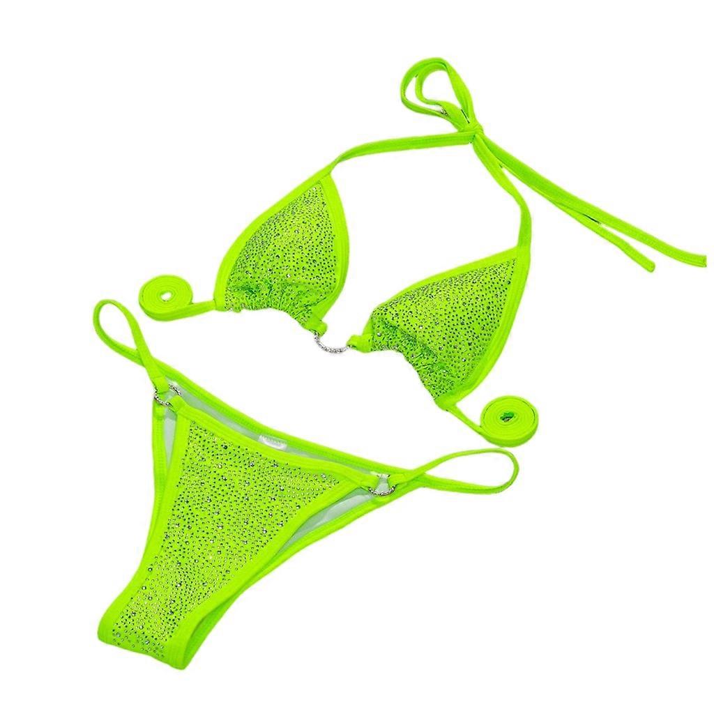 Women Sparkly Rhinestone Bathing Suit Lace Up Bikinis 2 Pieces High Cut Swimsuit