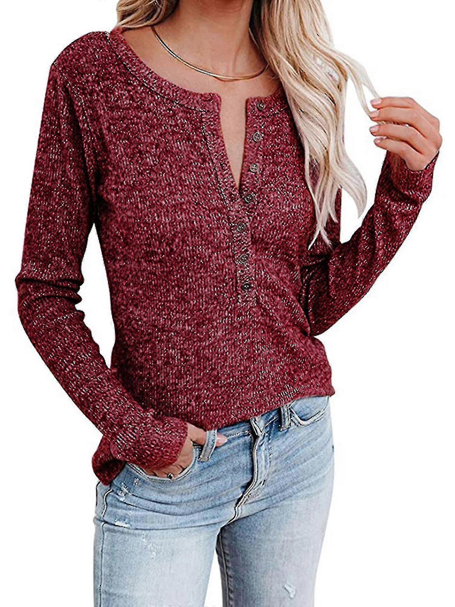Women V Neck Tops Button Henley Shirt Casual Long Sleeve Blouse Pullover