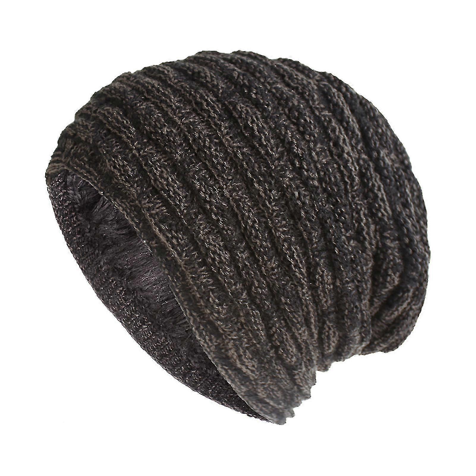 Women Autumn Winter Solid Color Plush Warm Knitted Baggy Beanie Hat Slouchy Cap One Size