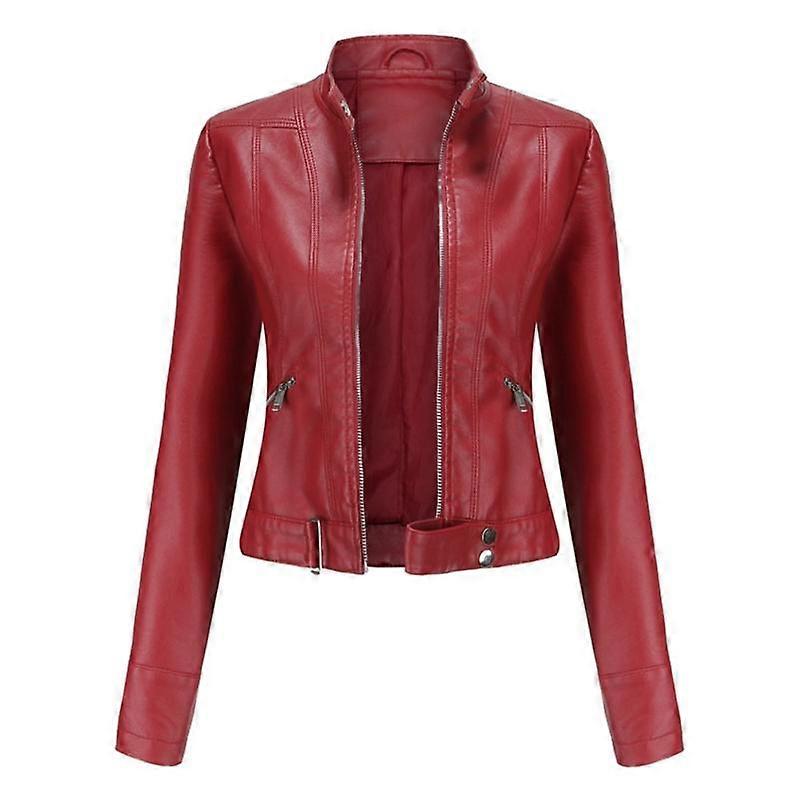 Women's Autumn Stand Collar Short Slim Pu Leather Jacket