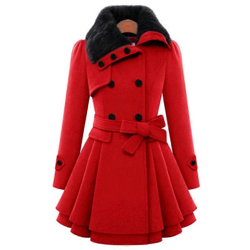 Women Warm Lace Up Wool Coat Lapel