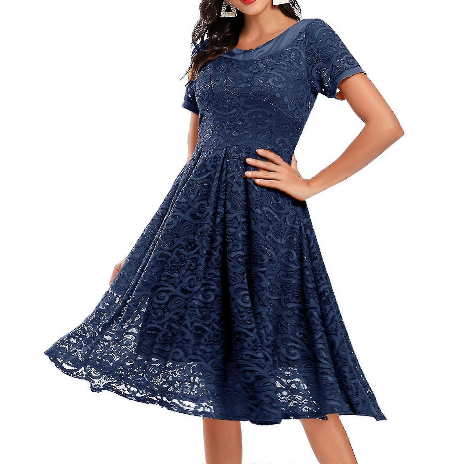 Women Lace Short Sleeves Party Dress Cocktail Prom Ballgown Vintage Dr