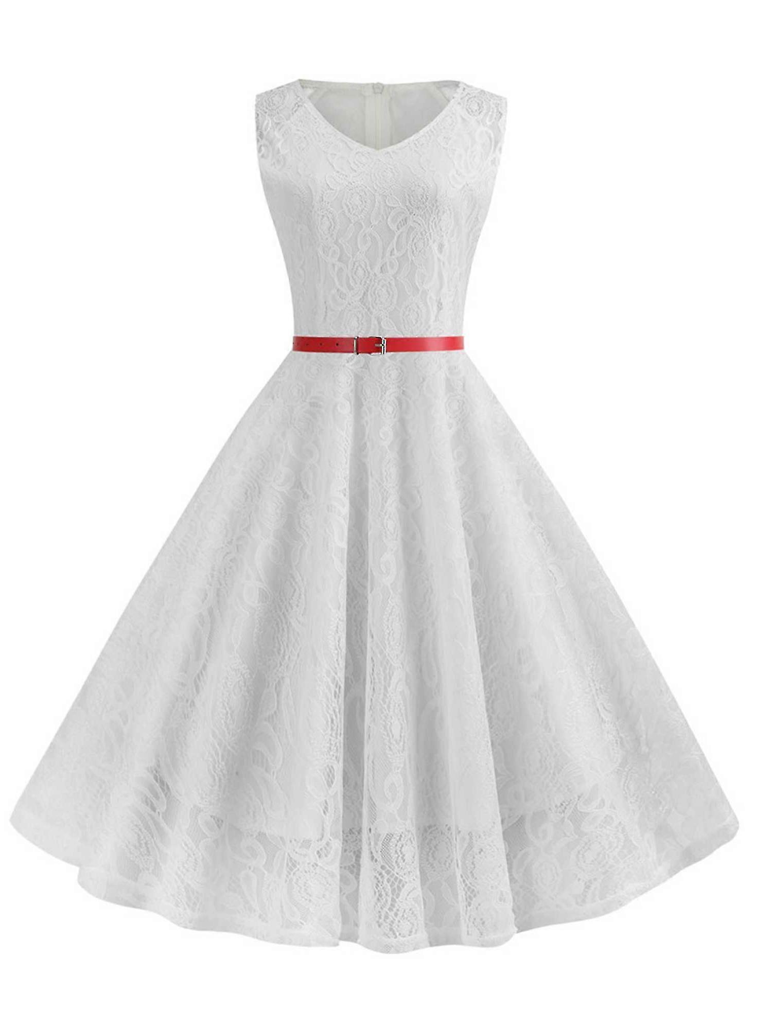 Womens Lace Retro Rockabilly Midi Dress 50s 60s Evening Party Swing Sundress