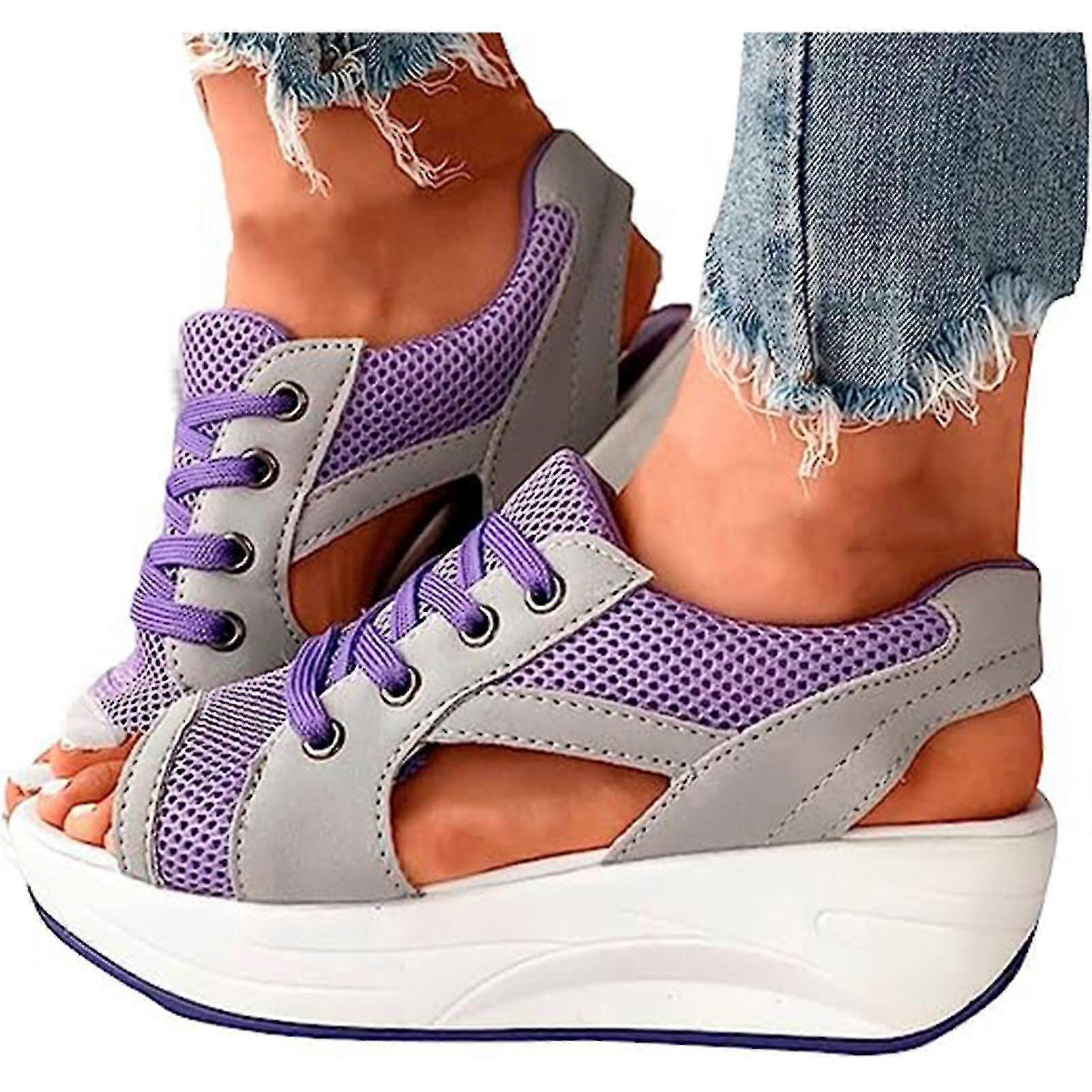 Women Lace-up Muffin Sandals Contrast Paneled Cutout Heeled Sandals Flip Flops For Daily Wear Summer Dressy Party