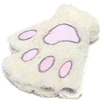 المرأة الدب أفخم القط مخلب مخلب قفاز أبيض لينة الشتاء الإصبع قفازات ميتن الأبيض