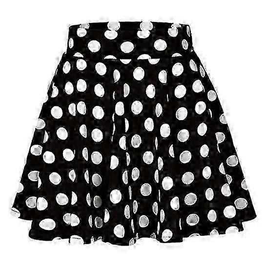 Women Spring Summer Dot Printed Skirt Soft Breathable Loose High Waist A-line Pleated Midi Dress Fashion Party Costume