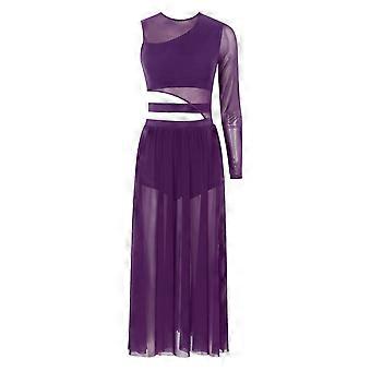Women Modern Dance Costume Side Split Sheer Mesh Dresses Elegant Woman's Gymnastics Leotard Skating Dress Lyrical Dancewear