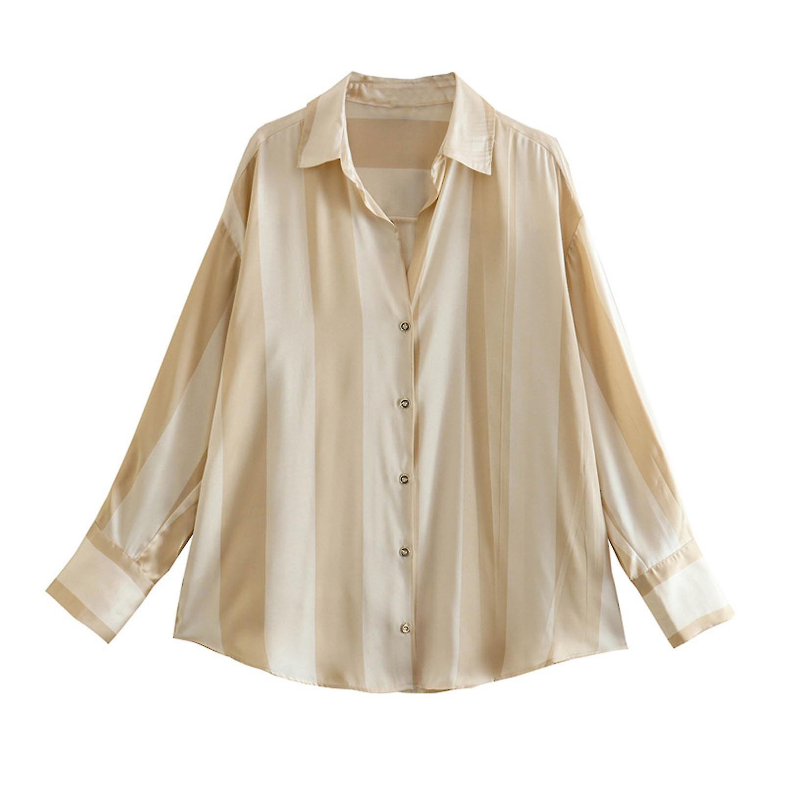 Women's Satin Pleated Striped Shirt Single Breasted Colorful Striped Blouse
