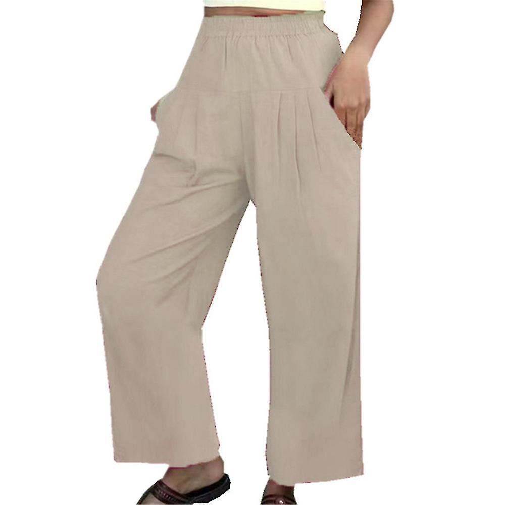 Women Pants Wide Leg Elastic Waist Plain Trousers With Pocket
