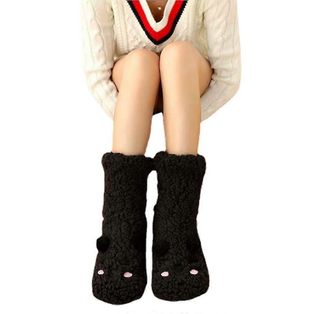 Women Winter Thick Faux Fleece Lined Socks Cute Cartoon Bear Fluffy Fuzzy Thermal Non Skid Slipper Hosiery Foot Warmer