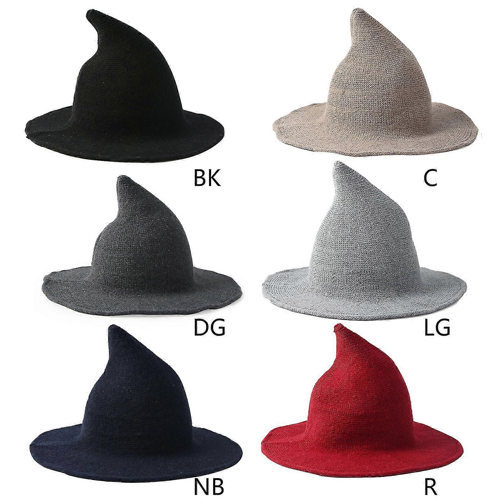 Women Winter Faux Wool Knitted Halloween Witch Hat Solid Wide Brim Bucket Cap