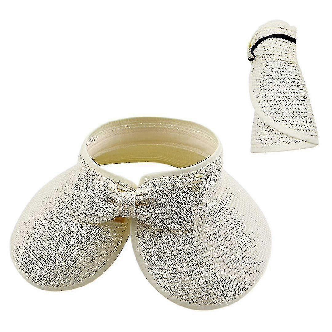 Women Sun Visors Foldable Straw Hats Summer Beach Packable Hat Floppy Wide Brim Cap Deep Style, Adjustable Size