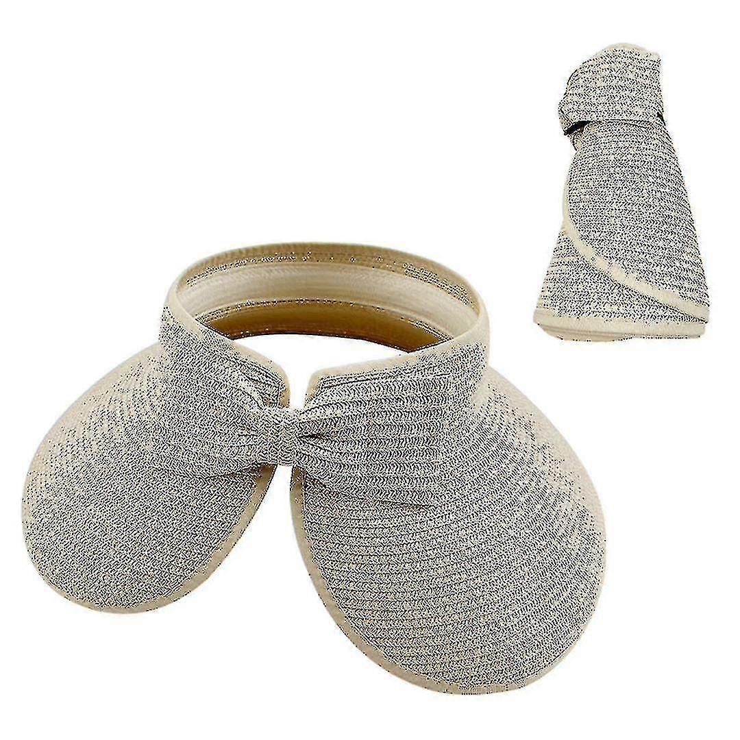 Women Sun Visors Foldable Straw Hats Summer Beach Packable Hat Floppy Wide Brim Cap Deep Style, Adjustable Size