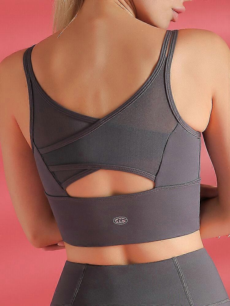 Women Solid Color Shockproof Mesh Patchwork Yoga Sports Bra
