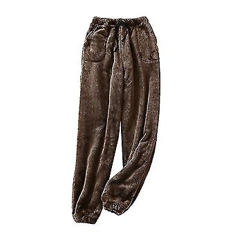 Women Fleece Pajama Pants Solid Color Sleepwear Trousers For Winter