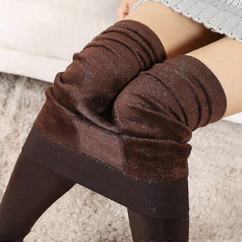Women Fleece Lining Leggings Solid Color Tights Full Length High Waist Tummy