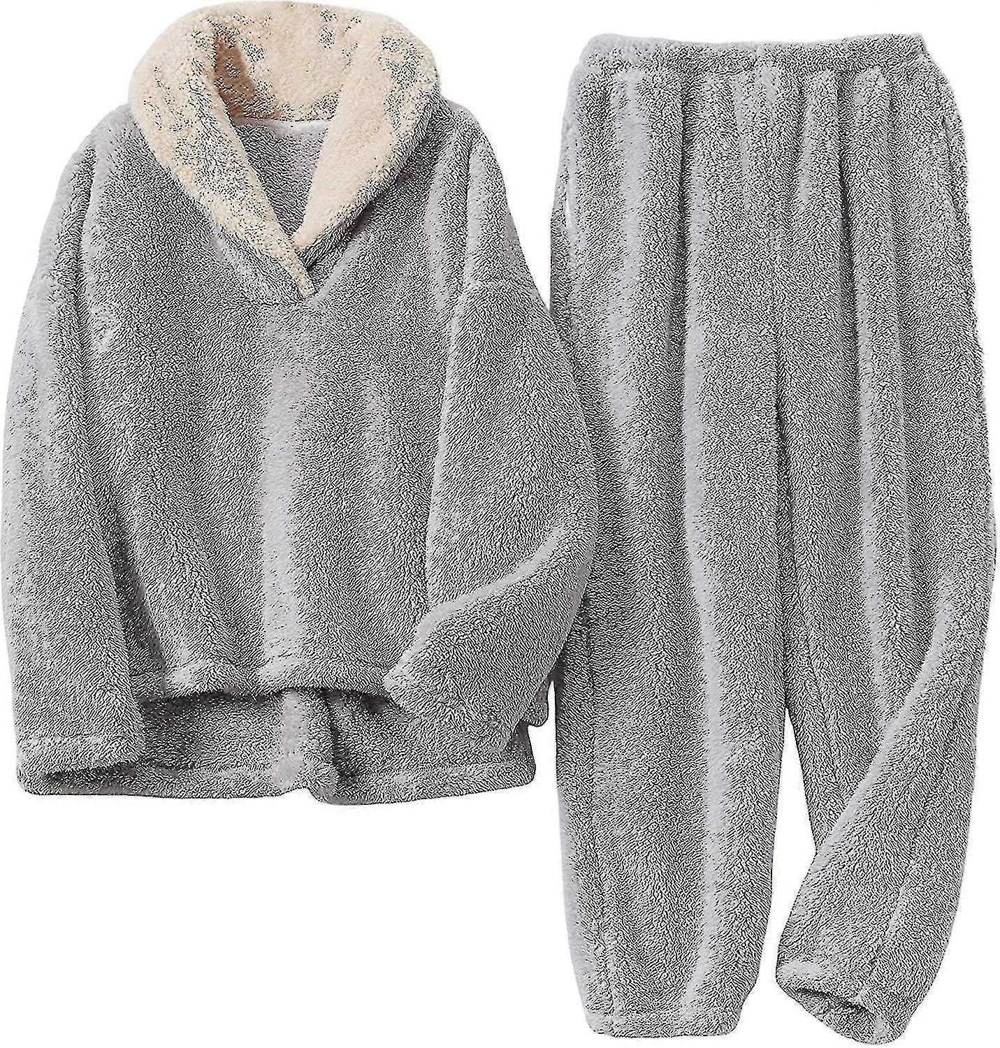 Women's Fleece Pajamas Sets Fluffy Sleepwear Warm Sherpa Pullover Pants With Pockets-CE