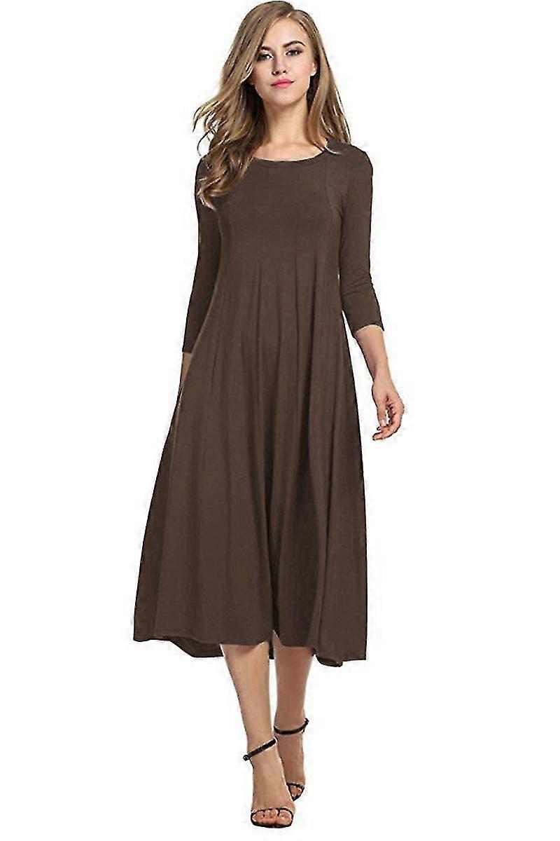 Women Summer Dress Fall Women's Clothing Round Neck Shirt With Half Sleeve Solid Color Wide Hem Dress