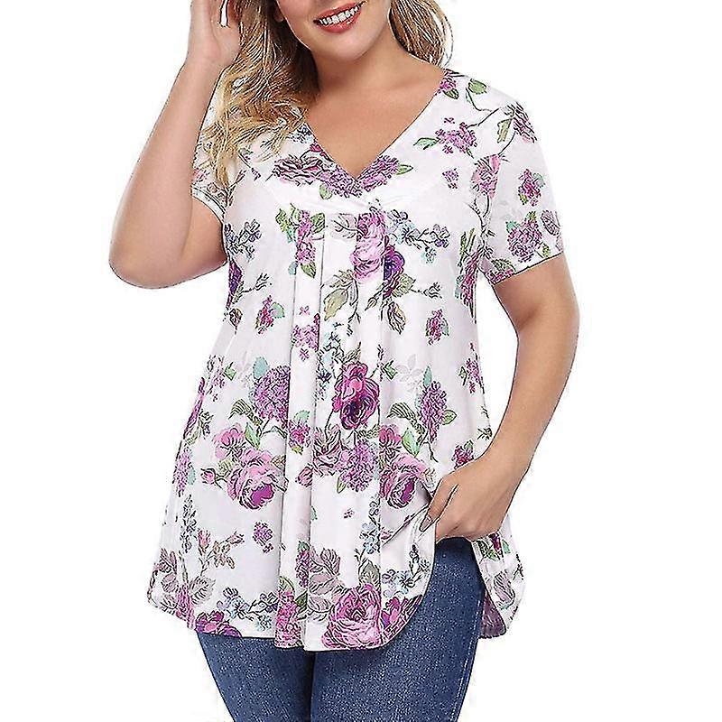 Women Summer T Shirts V Neck Tops Short Sleeve T-shirt Dailywear Blouse Plus Size Tunic