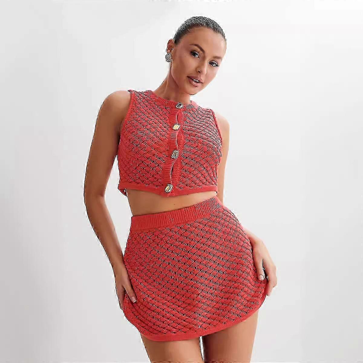 Shop Women's Summer Round Neck Fashion Hollow Knitted Short Dress Suit. One of many items available from our Dresses department here at Fruugo!