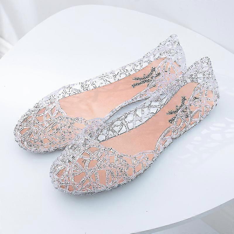 Women's Summer Beach Jelly Sandals Slip On Flats Hollow Casual Breathable Pumps