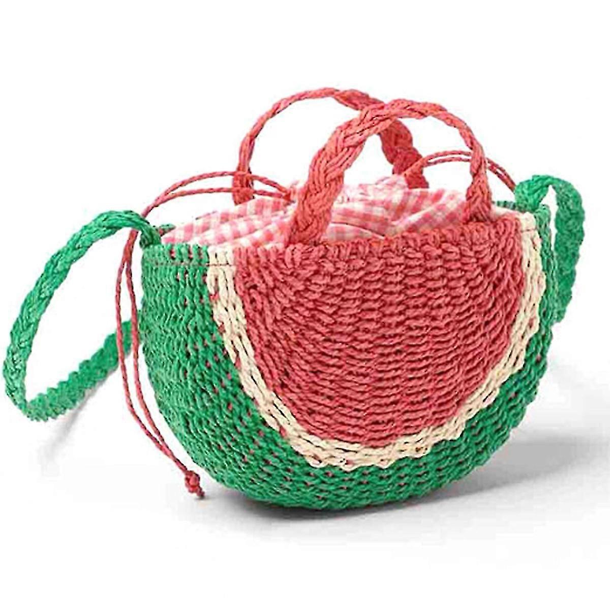 Women Straw Watermelon Handbag, Summer Beach Tote Bag Crossbody Shoulder Top Handle Handbag Handmade Purse Clutch Bag